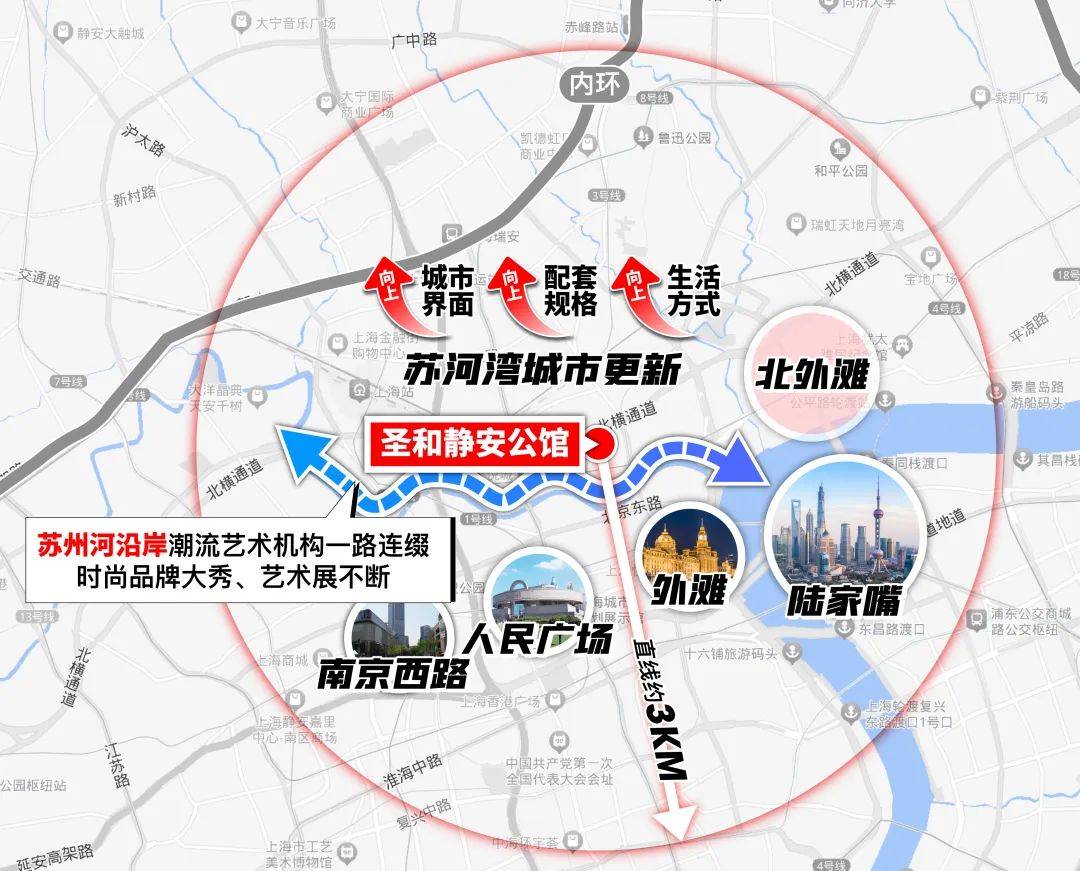 值得一提还有,比起目前苏河湾其他新房,圣和静安公馆距离地铁站和外滩是更近的,出行更方便的同时,也