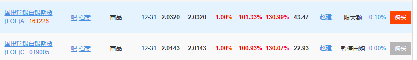 回看这只基金能炒到这么高的溢价,核心原因有三个:全市场独一份、白银大涨、还有就是基金公司的限购政策。