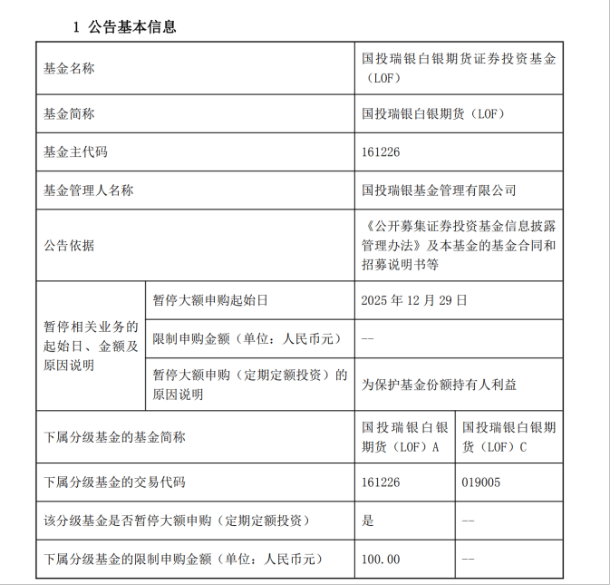 现在,国投瑞银白银期货LOF的C份额已暂停申购,这也给所有投资者敲响了警钟:别把基金当股票炒作,看不懂的金融产品,坚决不碰。