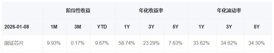 再看两个指数的过往表现,在近一年、近三年和近五年,中证全指半导体产品与设备指数的收益均高于国证半导体芯片指数。