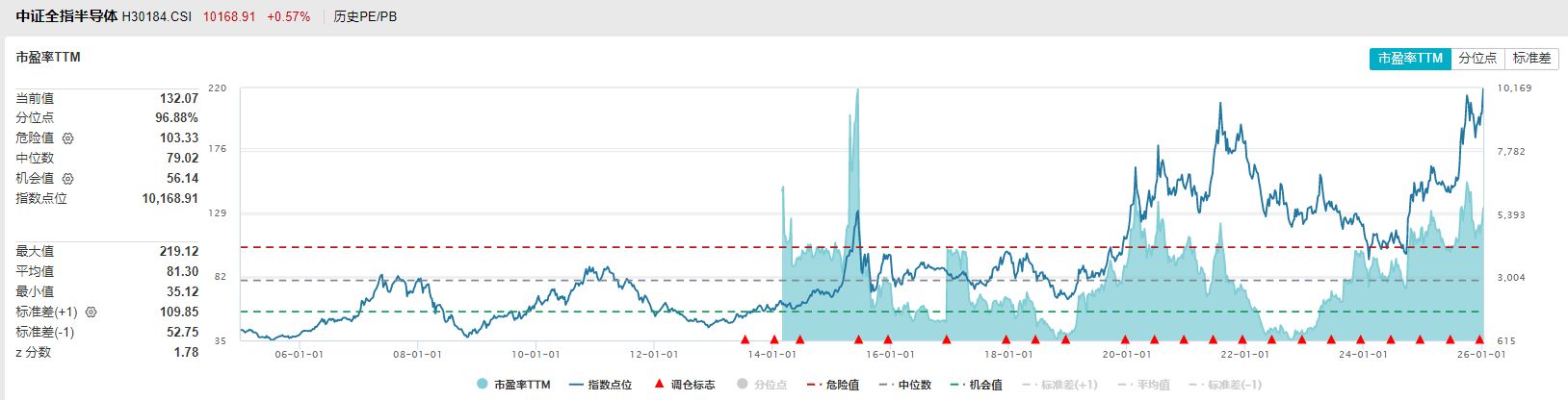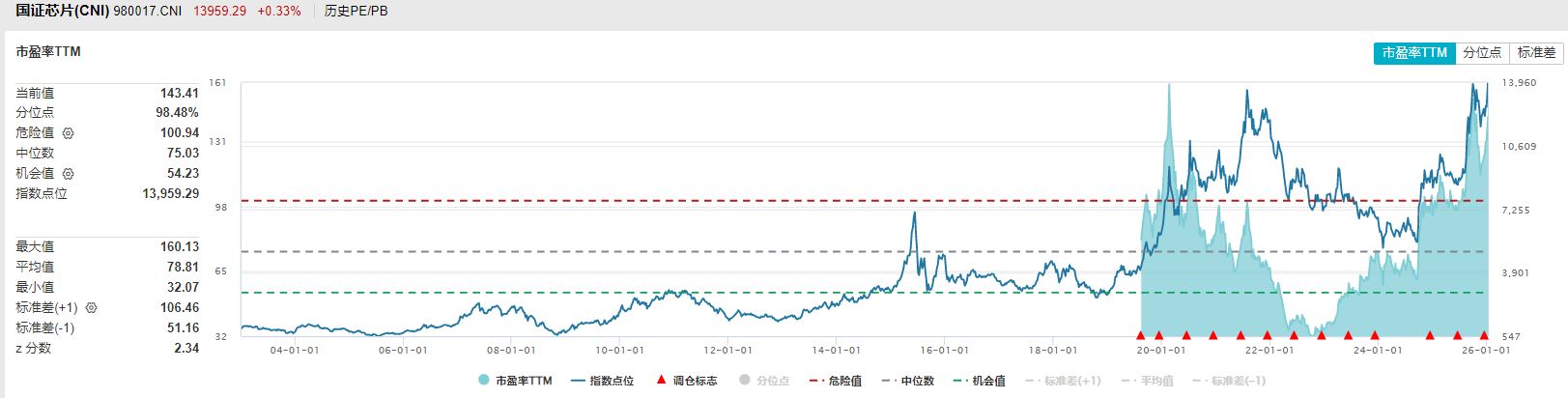 最后再对比两个指数目前的估值水平,wind数据显示,两个指数目前的市盈率TTM都回升到了历史90%分位以上,均属于较高位置。其中国证半导体芯片指数过往可参考的数据较短,主要体现的是近5年来的估值水平。