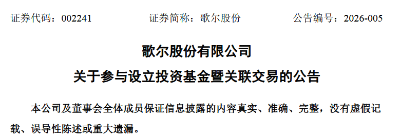 2026-01-12AYX爱游戏,爱游戏体育,爱游戏体育官网,爱游戏APP下载1月10日,歌尔股份发布公告,披露了公司在投资领域的最新布局。公告显示,为满足经营发展需求,歌尔股份拟作为有限合伙人参与设立上海同歌二期创业投资合伙企业(有限合伙)(简称“同歌二期基金”)。该基金总规模约为6.97亿元人民币,其中歌尔股份拟以自有资金出资不超过2.3亿元,占基金规模比例不超过33%。