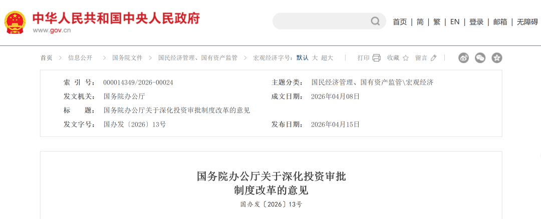 为进一步优化投资审批权限配置、提升投资服务便利度、强化投资项目全过程监管,着力扩大有效投资,经国务院同意,现就深化投资审批制度改革提出以下意见。